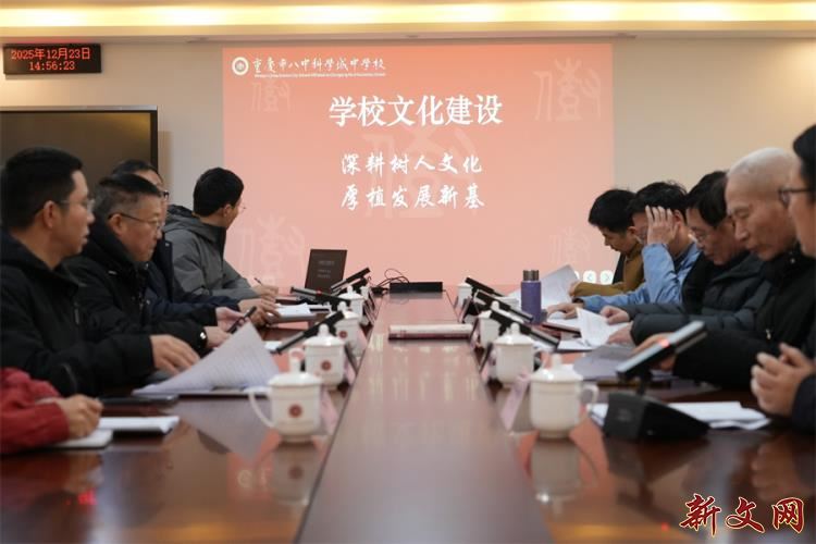 为深化区域学校文化建设内涵,全面提升文化育人实效,2025年12月23日下午,在重庆高新区教育事务中心的组织领导下,国家教育发展研究中心原副主任周满生研究员、中国教科院李继星研究员、苏州市教育质量监测中心原主任罗强三位资深教育专家莅临学校,评审、指导学校文化建设情况。高新区教育事务中心中教部冯志刚主任、物理教研员王胜华协同参与。专家组通过实地踏勘、听取汇报、审阅资料、深度交流等方式,对学校文化建设工作进行全方位的审视与指导。重庆八中科学城中学党委书记曾奇,副校长苏世延、徐铸及相关职能部门负责人全程参与。